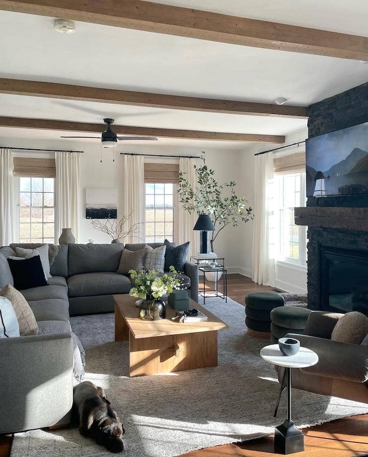 10. Dark Ceiling Beams for a Classic Farmhouse Touch